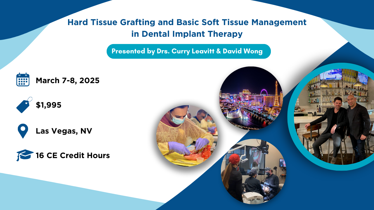 When it comes to replacing missing teeth, patients desire a predictable, long-lasting, esthetic solution. Dental implants have become the standard of care for meeting these needs, but successful implant therapy requires a solid foundation. When teeth are lost due to disease, infection or trauma, bone quality is often compromised. This course will focus on proper planning and execution of predictable bone grafting techniques to restore a patient’s smile and function with dental implants. Principles of soft tissue management around implants, including flap design, suture techniques, use of membranes and papillae maintenance, will also be presented. Participants will practice grafting techniques in a hands-on exercise utilizing pig jaws, following faculty demonstration. A live patient surgery demonstration on extraction and socket grafting will also be presented.