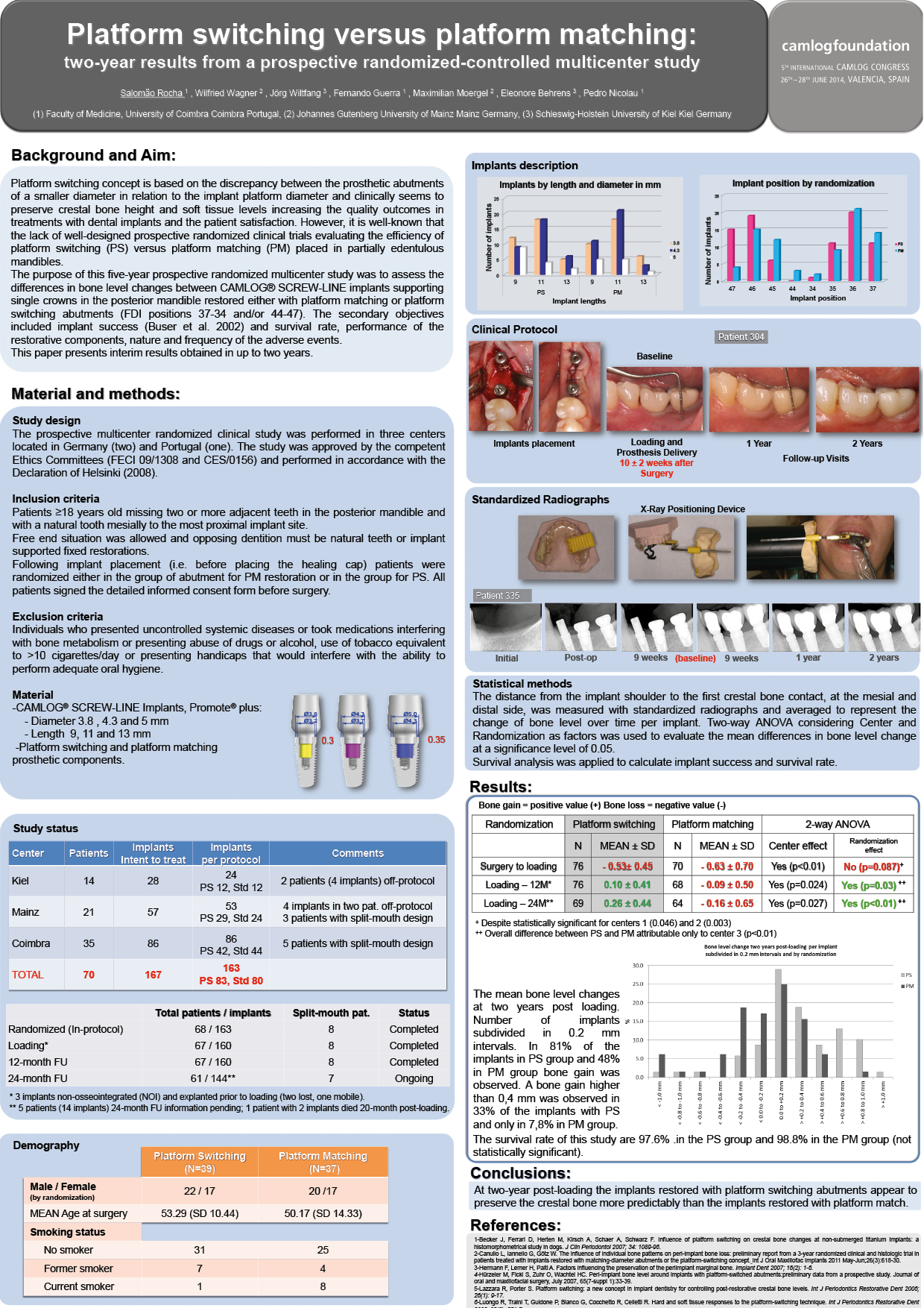 We are proud to present all accepted posters of the 2014 poster competition which took place on the occasion of the 5th International CAMLOG Congress, Valencia, Spain.