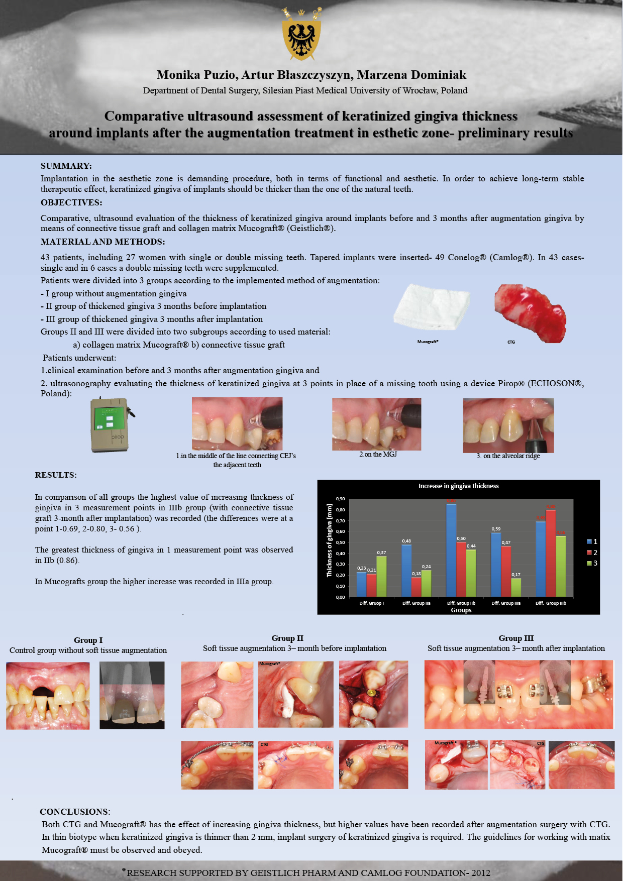 "Comparative ultrasound assessment of keratinized gingiva thickness around implants after the augmentation treatment in esthetic zone - preliminary results"