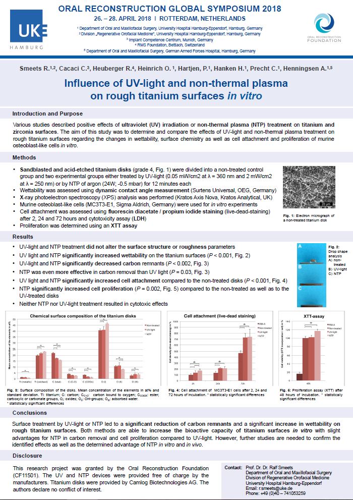 "Influence of UV-light and non-thermal plasma on rough titanium surfaces in vitro"