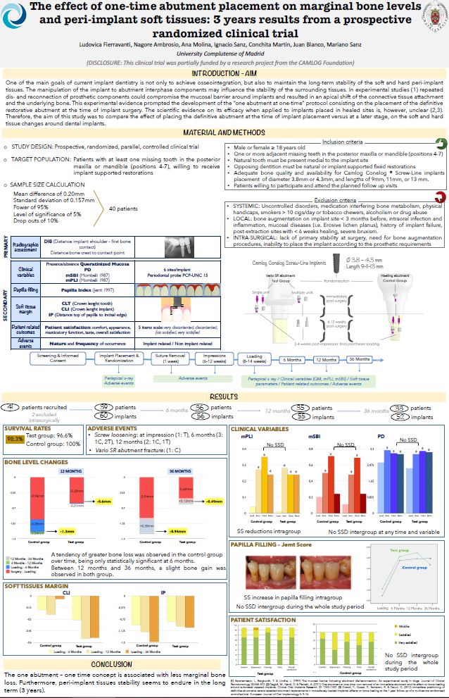 "The effect of one-time abutment placement on marginal bone levels and peri-implant soft tissues: 3 years results from a prospective randomized clinical trial"